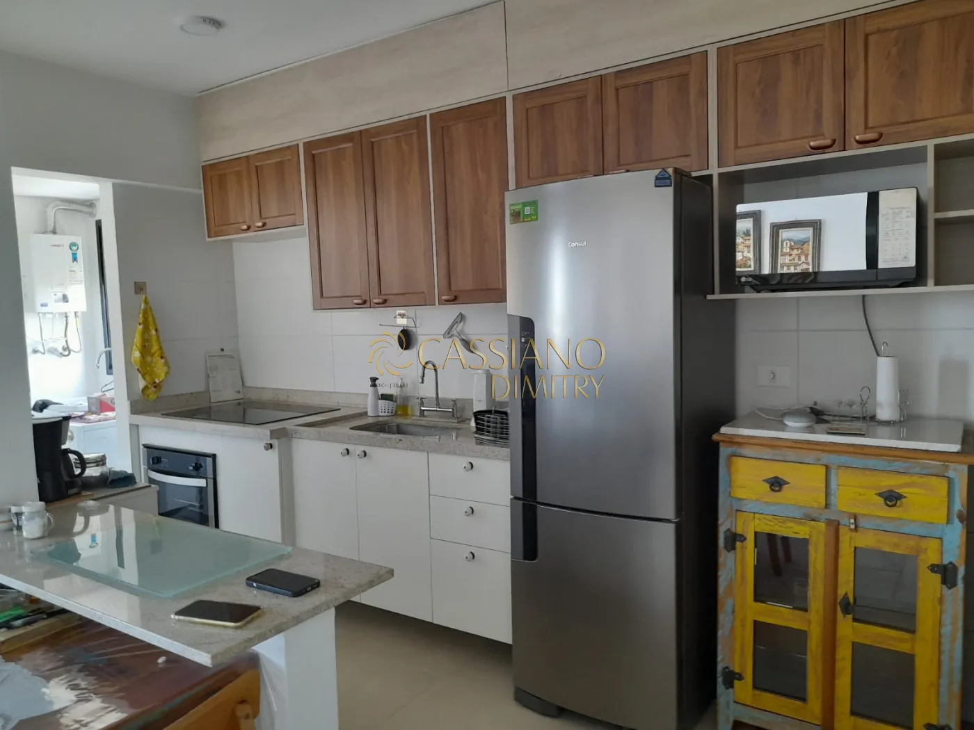 - Cozinha com eletrodomésticos (fogão e forno elétrico LG (importado), geladeira reversa, micro-ondas e triturador na pia);