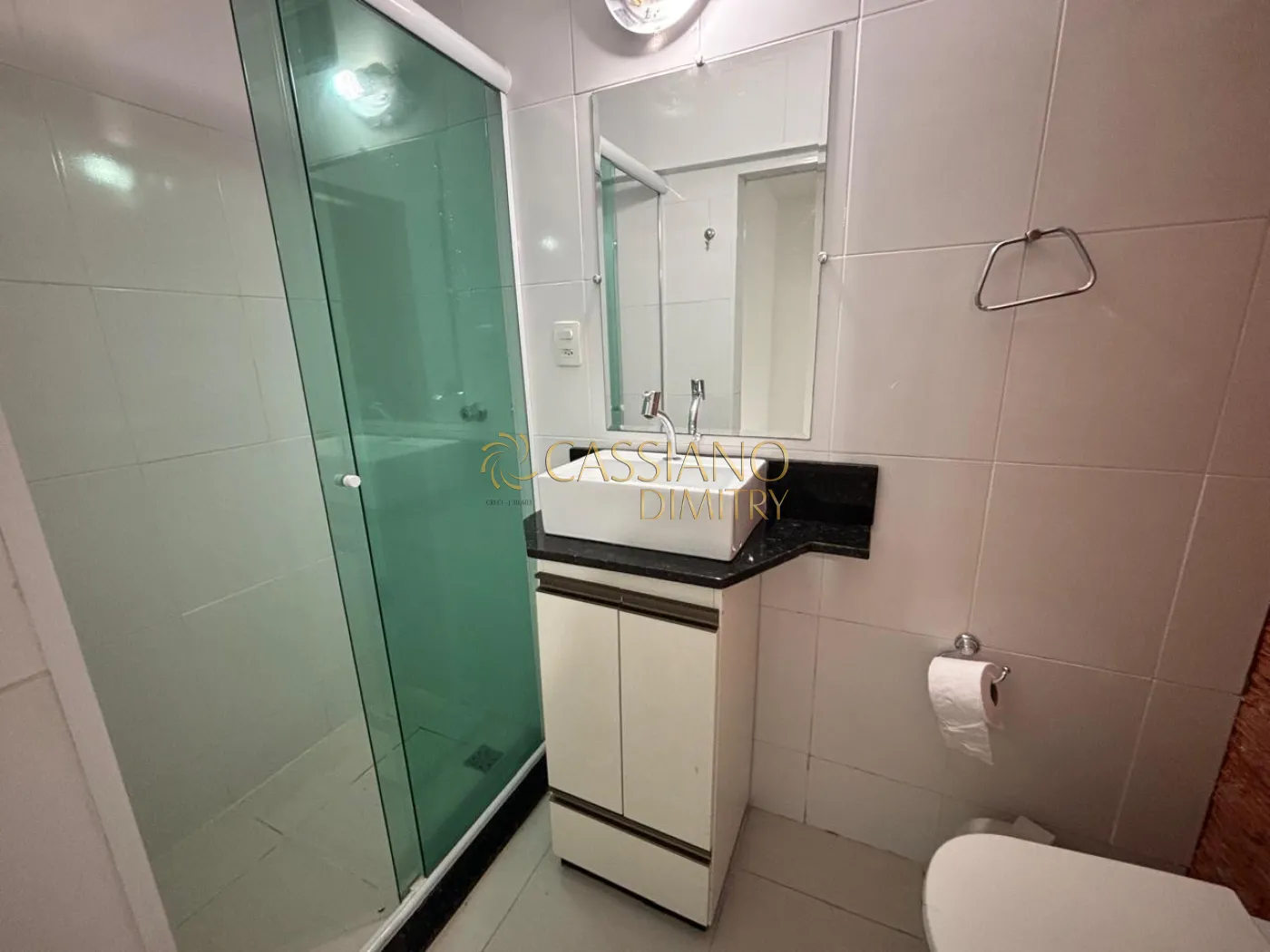 - Banheiro social com box blindex e gabinete;