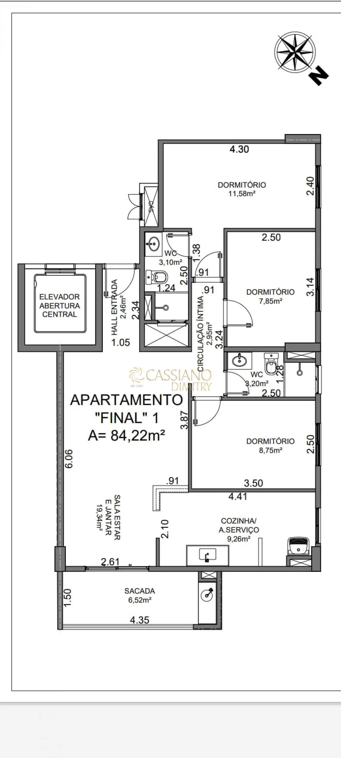 Área Privativa: 84,22m².