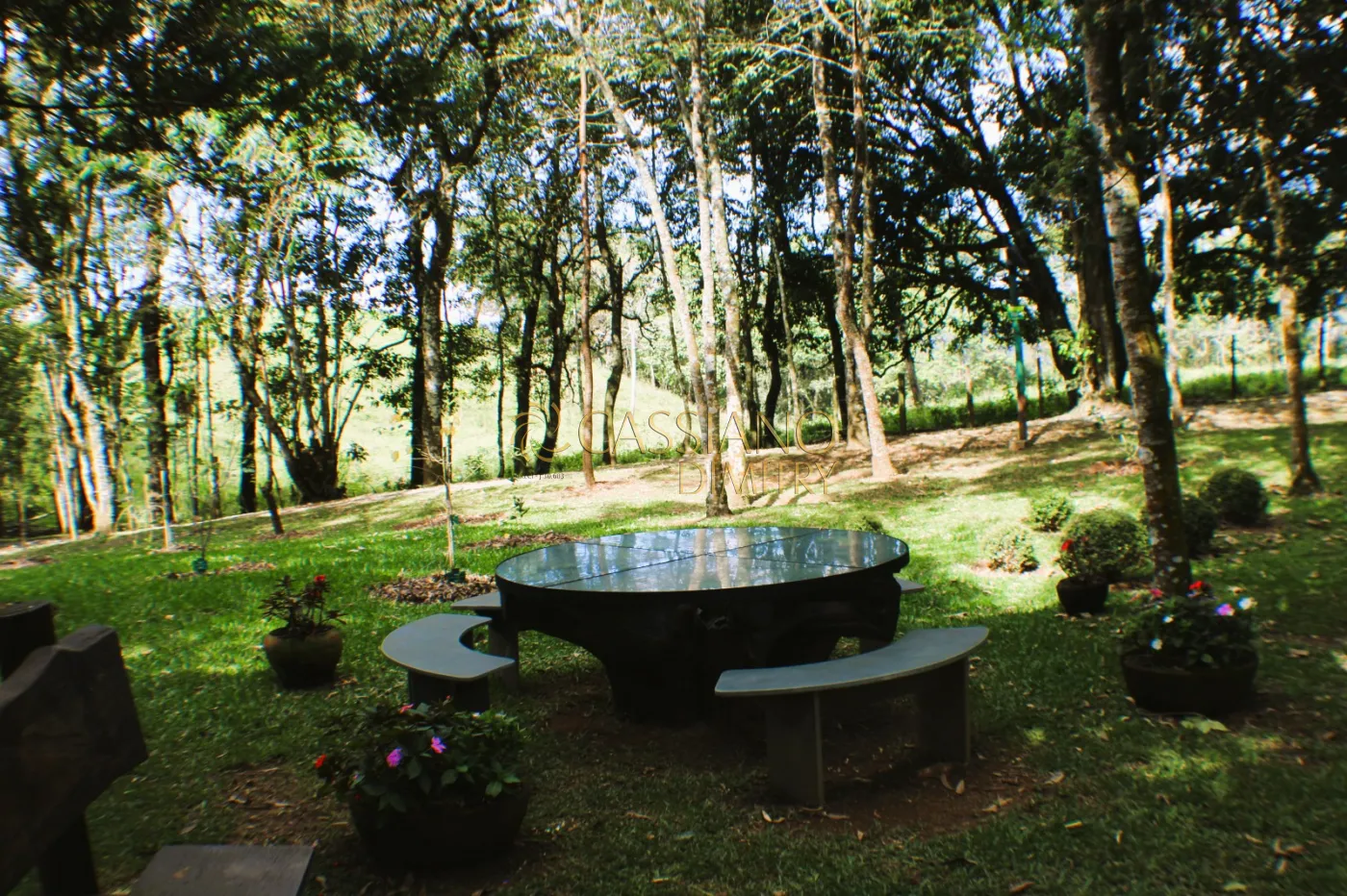 - Quintal com árvores ornamentais e frutíferas e cerca viva;