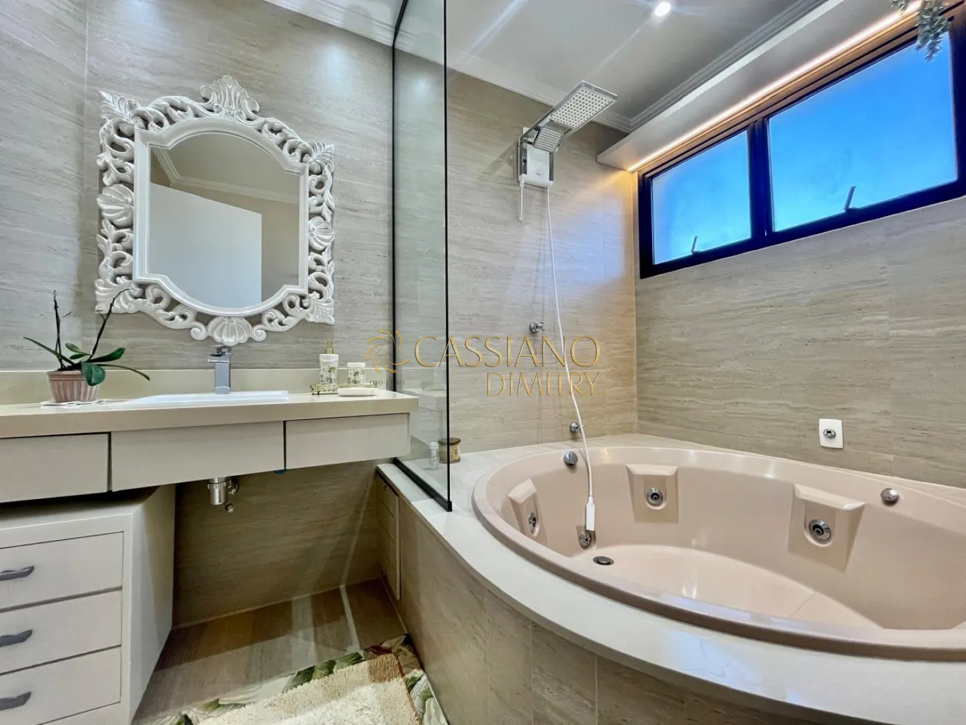 - 02 dormitórios com armários planejados, sendo 01 suíte com banheira de hidromassagem;