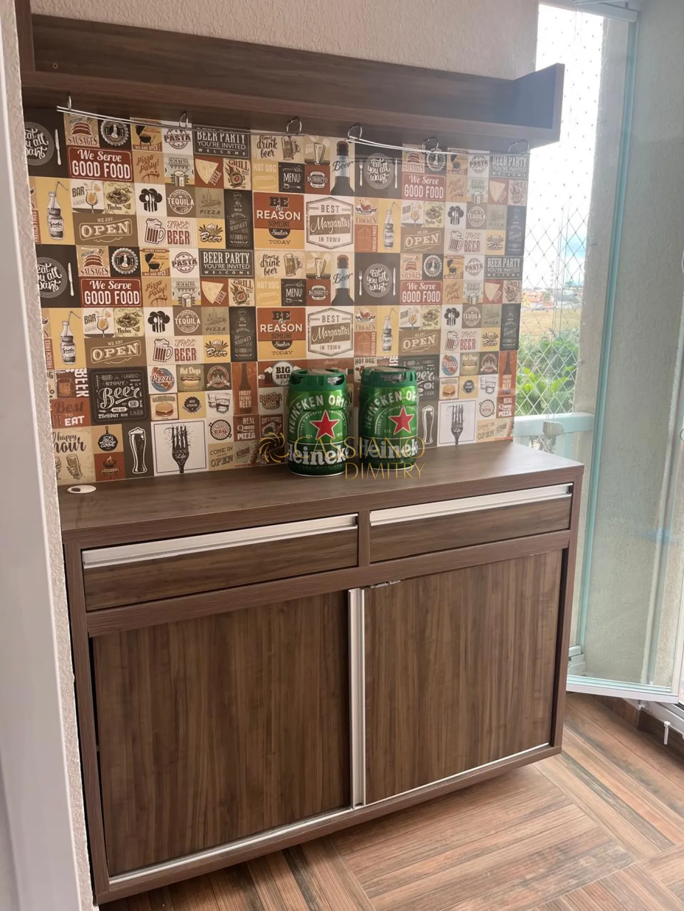 - Varanda gourmet envidraçada e com persiana rolô;