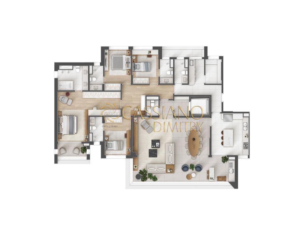 Apartamento à venda de 300 m² | 05 suítes, 07 banheiros e 04 vagas de garagem | Évory Park - Jardim das Colinas | São José dos Campos |