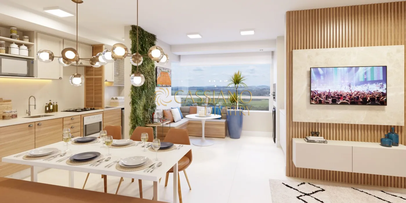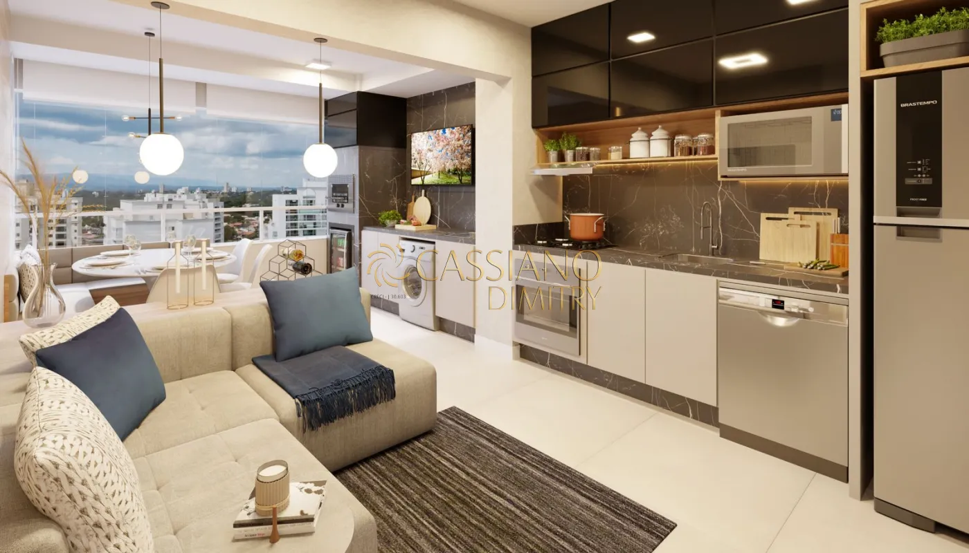 A.U 60,85 m² andar médio, sol manhã, 2 dormitórios sendo 1 suíte com sacada, banheiro social, cozinha ampla integrada a varanda gourmet com churrasqueira tipo ecológica ,área de serviço , 1 vaga de garagem
