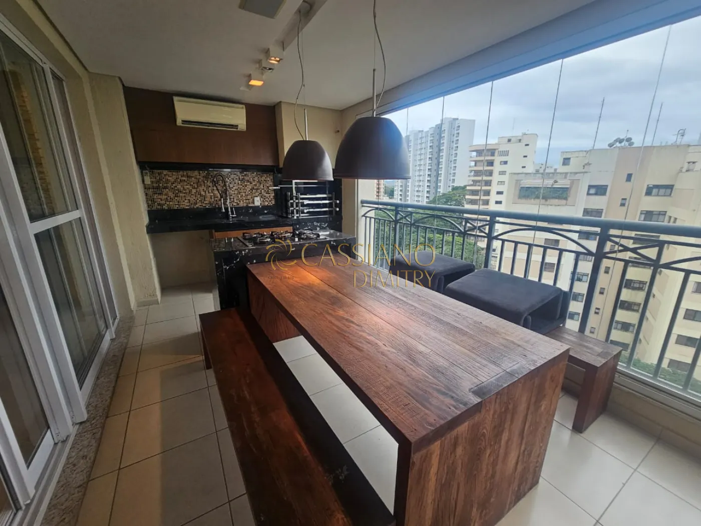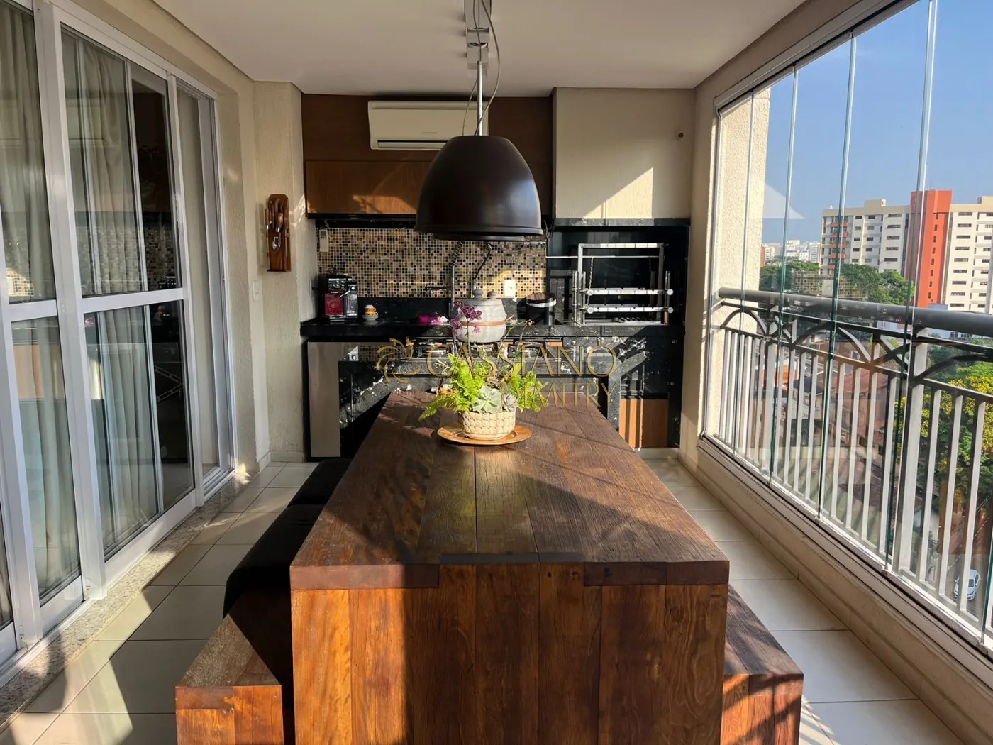 - Varanda com churrasqueira e fechamento em vidro;