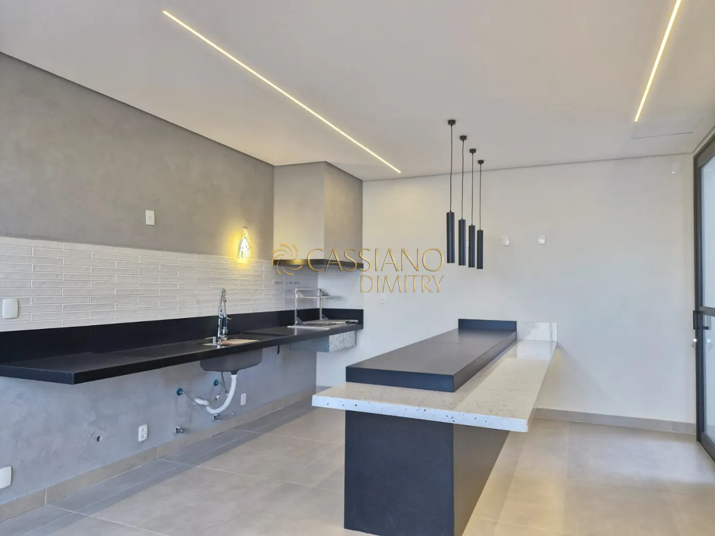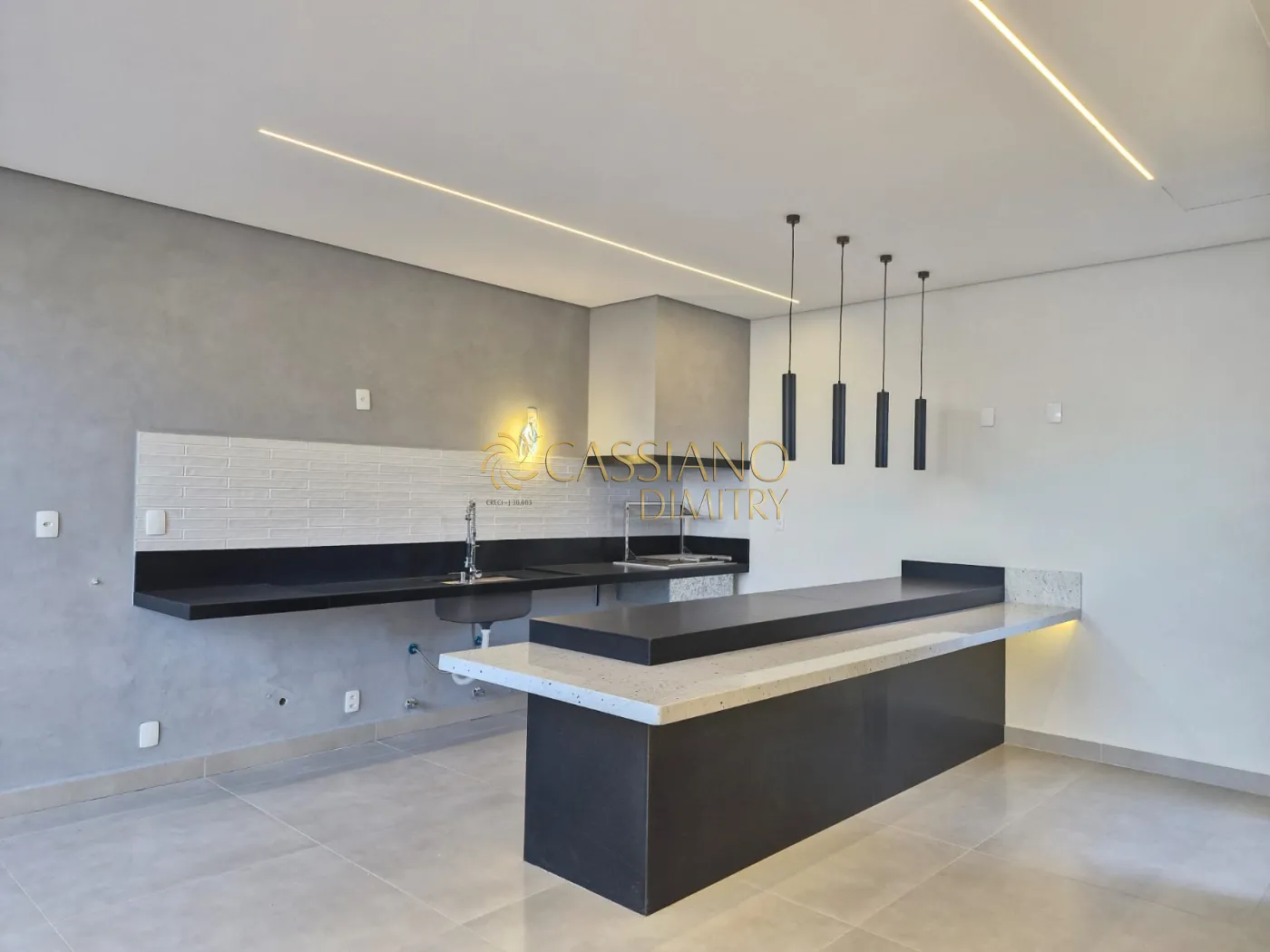 - Cozinha americana toda aberta, integrada a piscina e ilha espaçosa;