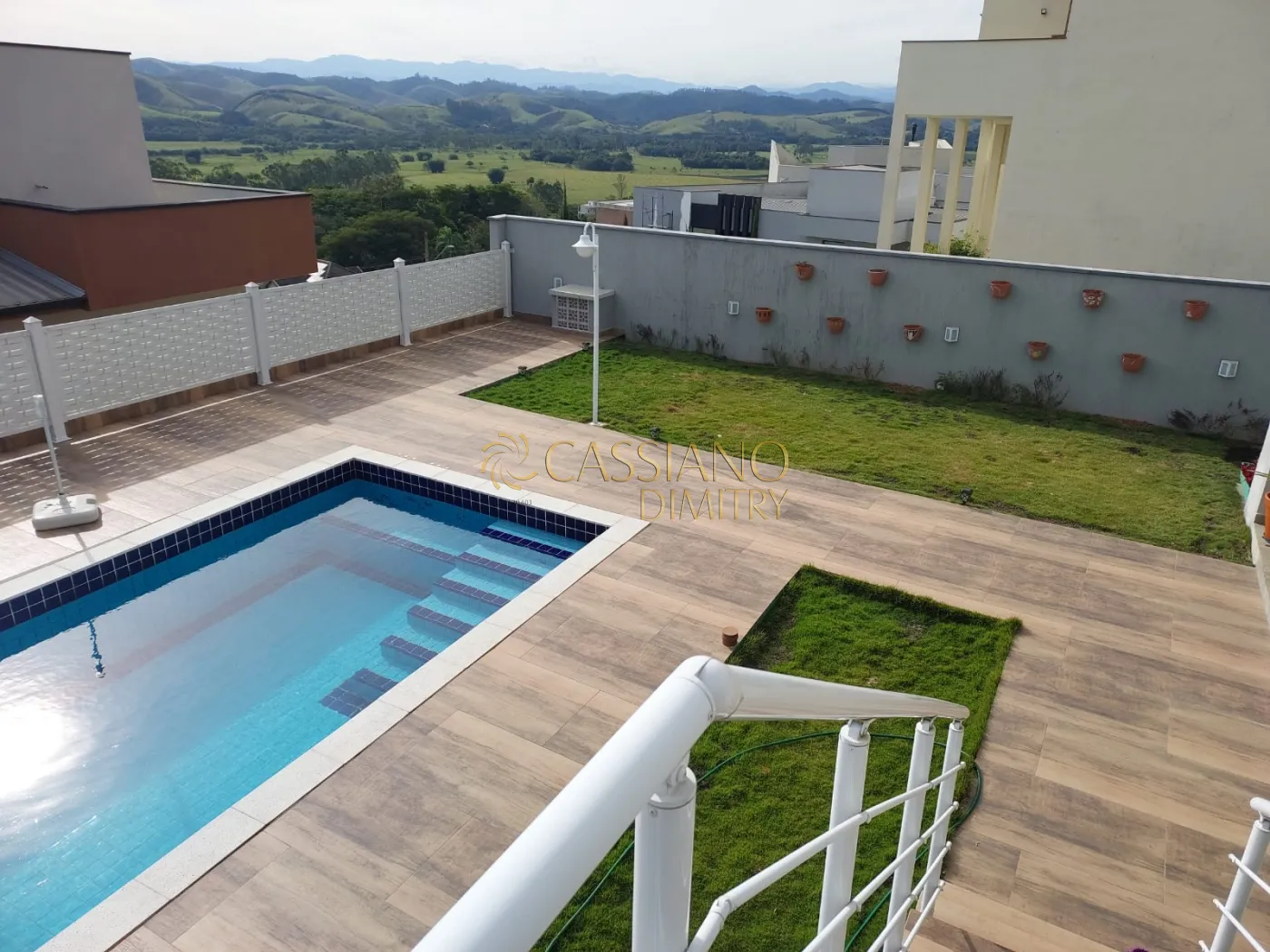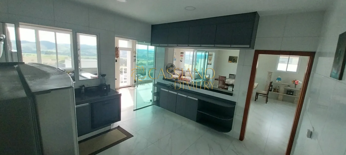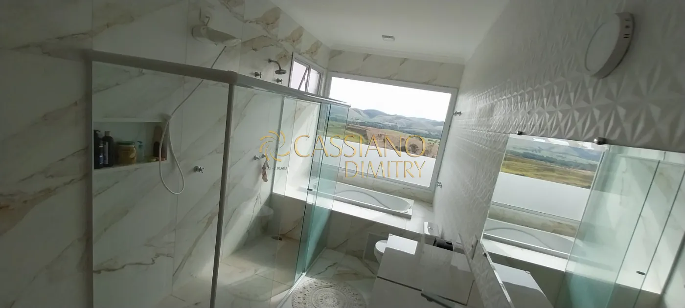 A casa tem 2 anos e meio de construção, fica no ponto mais alto do condomínio privilegiando uma vista total da Serra da Mantiqueira.