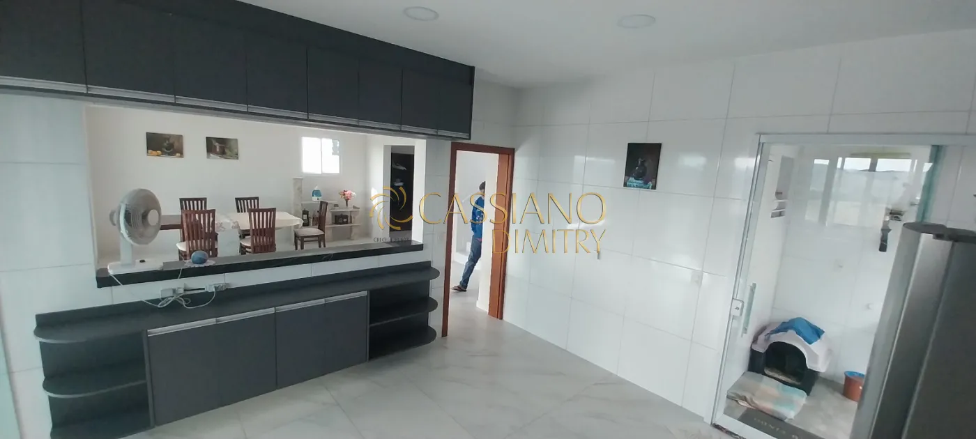 Cozinha integrada à sala de jantar, repleta de armários;