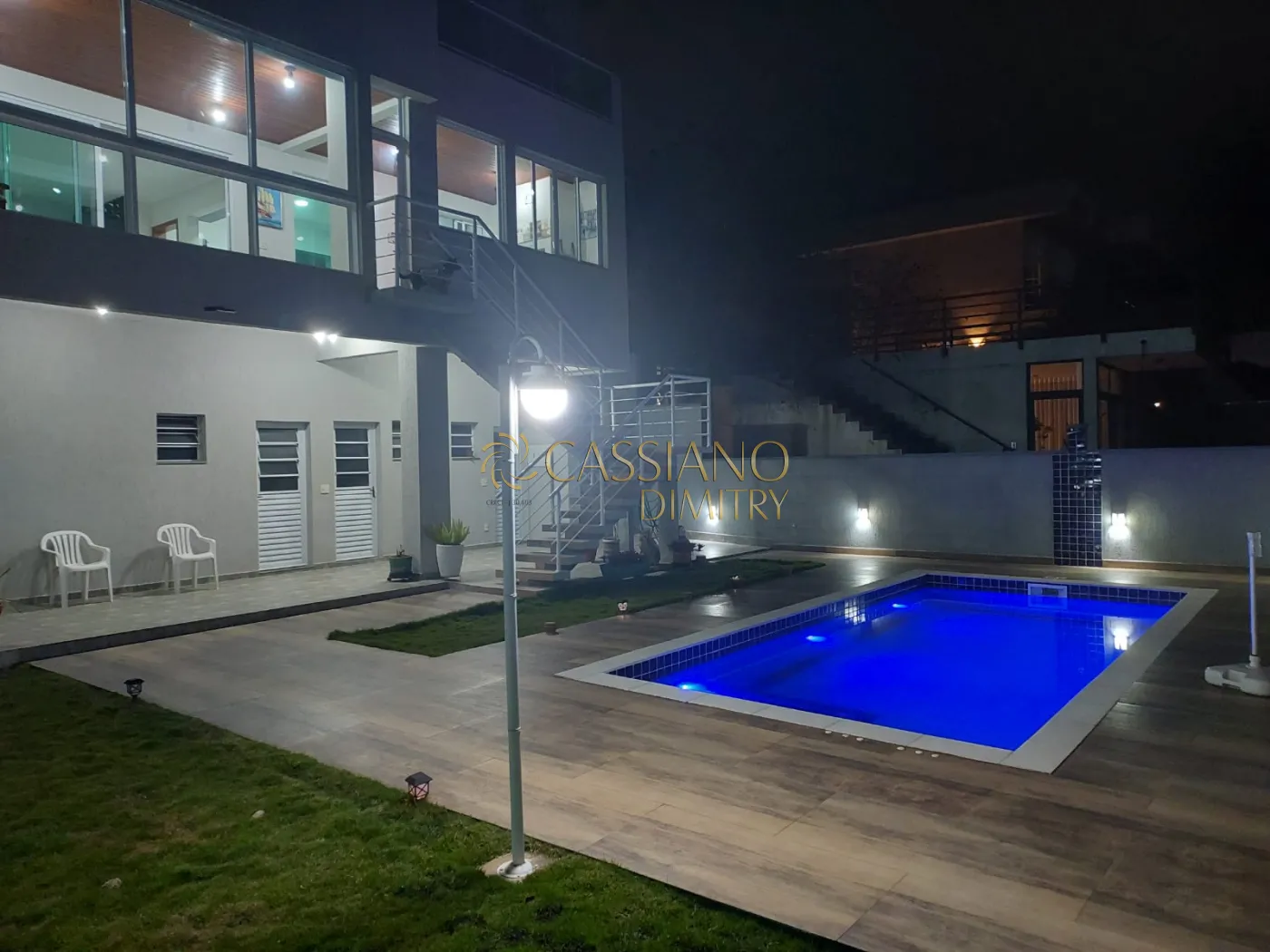 Amplo jardim gramado, todo iluminado;