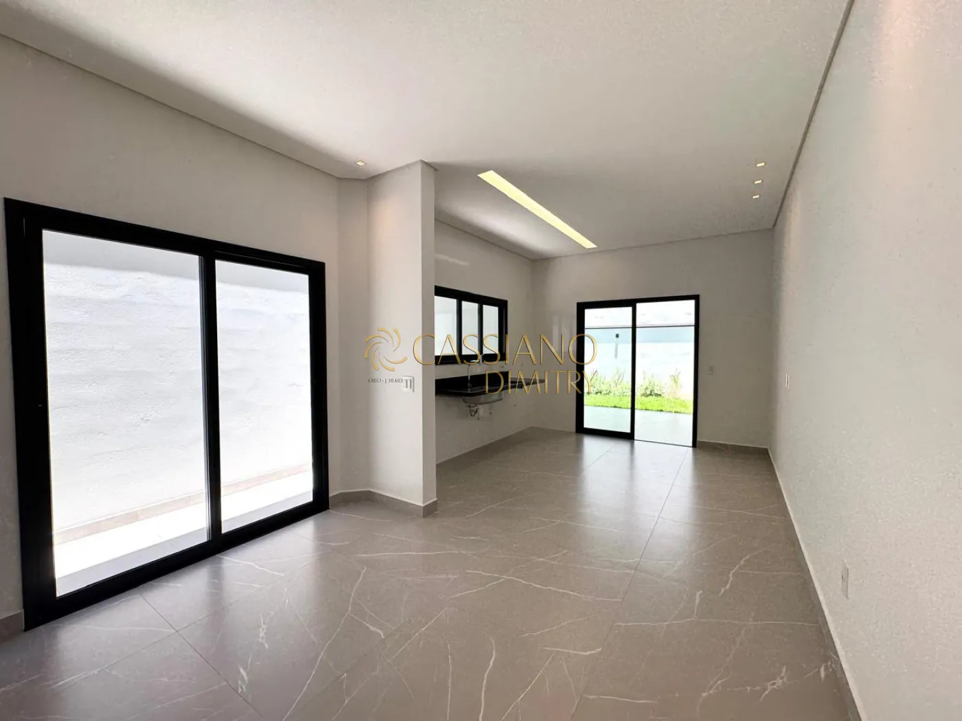 Térreo com sala para 02 ambientes integrados a cozinha em conceito aberto, área de serviço. Área gourmet equipada, quintal com jardim e 02 vagas de garagem com portão automatizado.