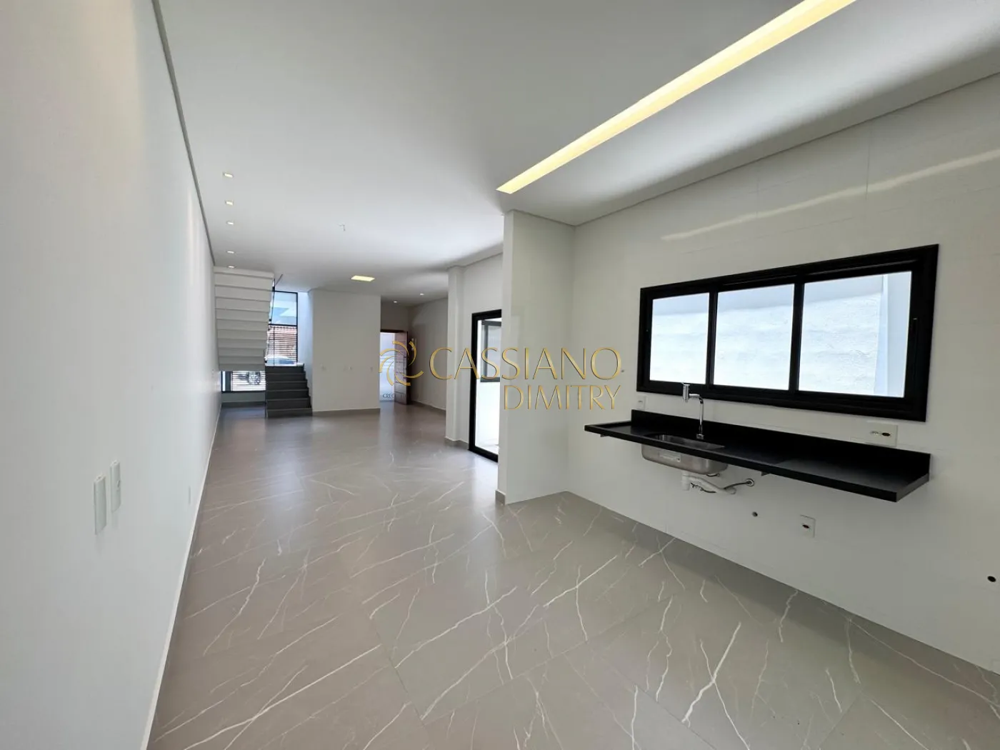 - Sala para 02 ambientes integrados à cozinha em conceito aberto;