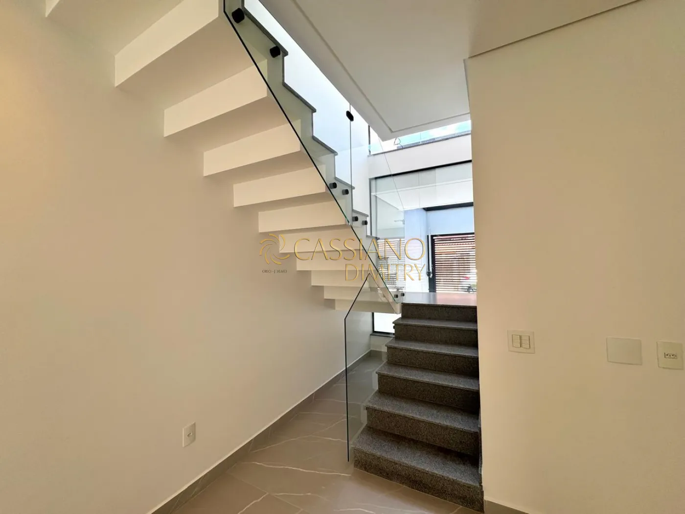 - Escada inteiramente revestido com granito;