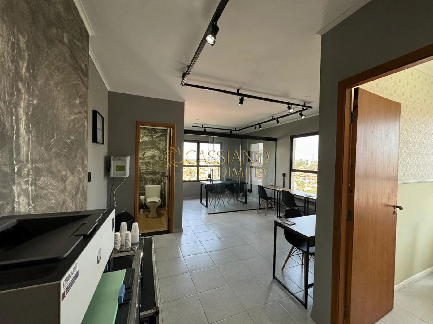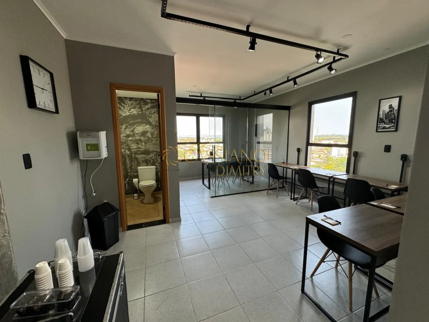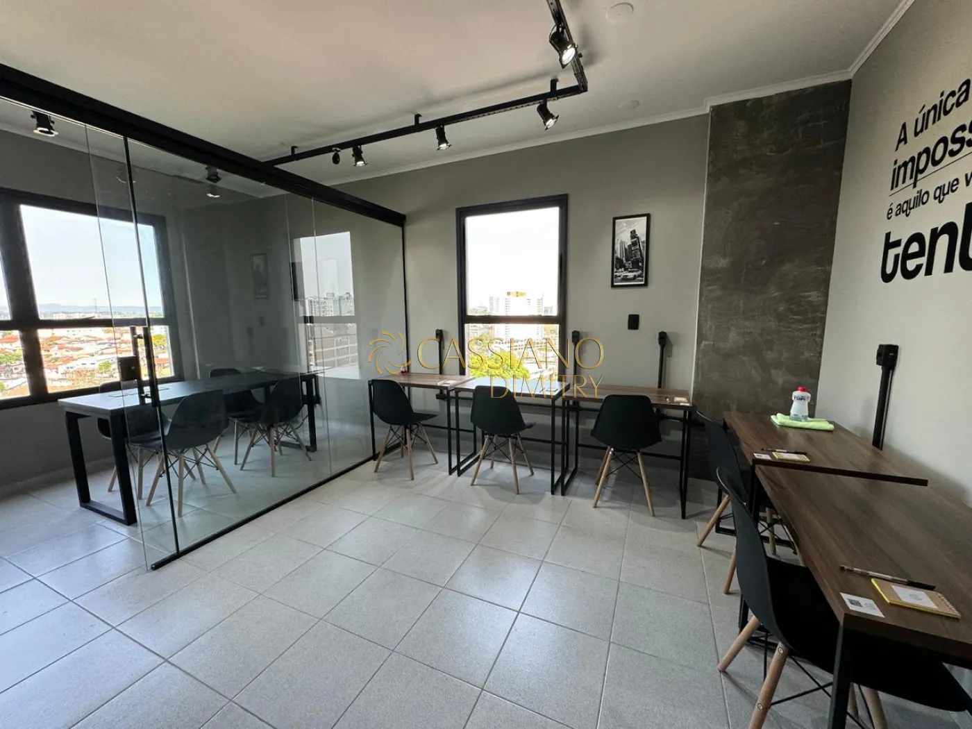 - A sala está com mesas, cadeiras, luminárias, bancadas, frigobar, é só entrar e começar a trabalhar;