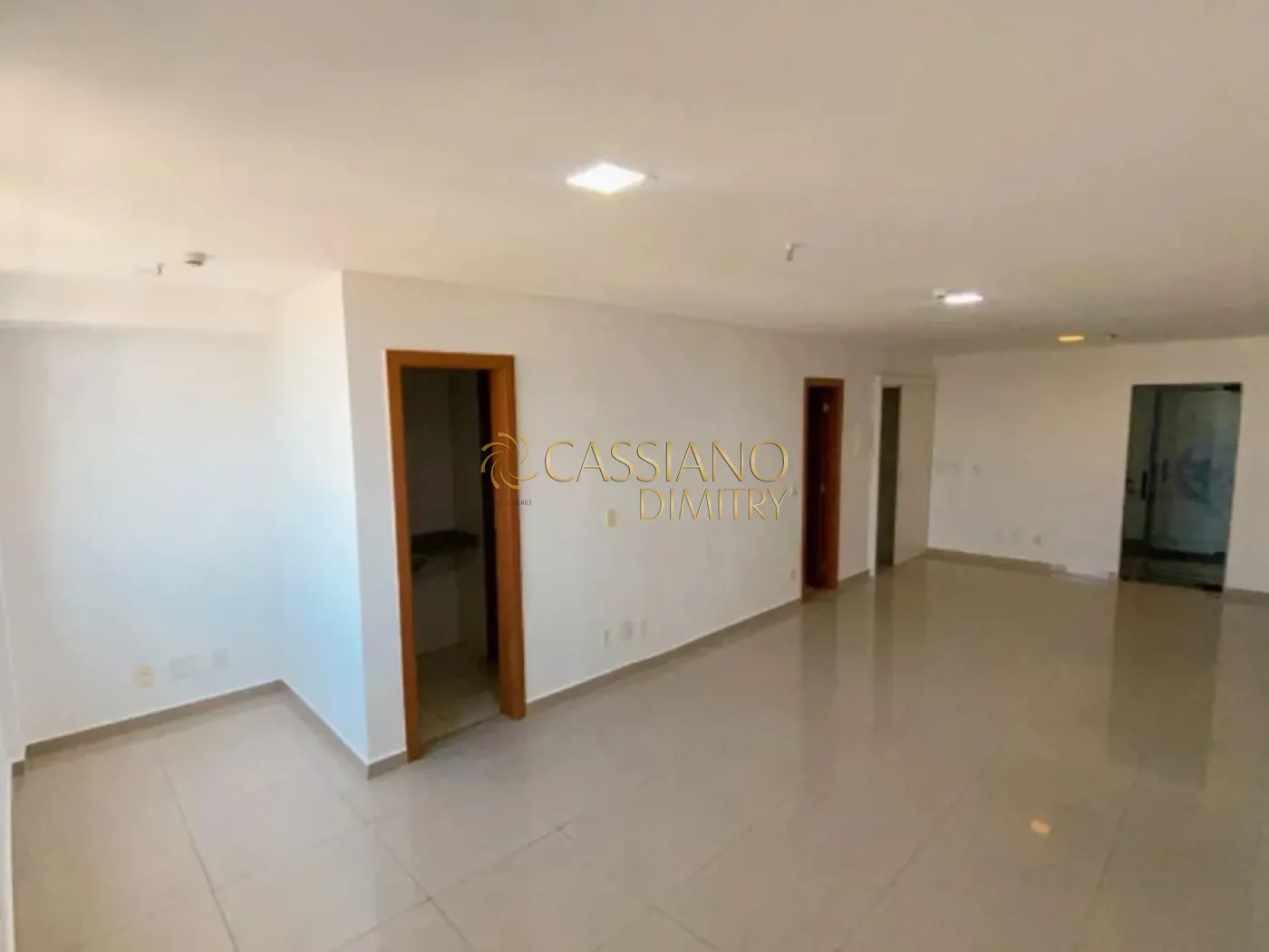 - Porta de vidro e piso em porcelanato.
