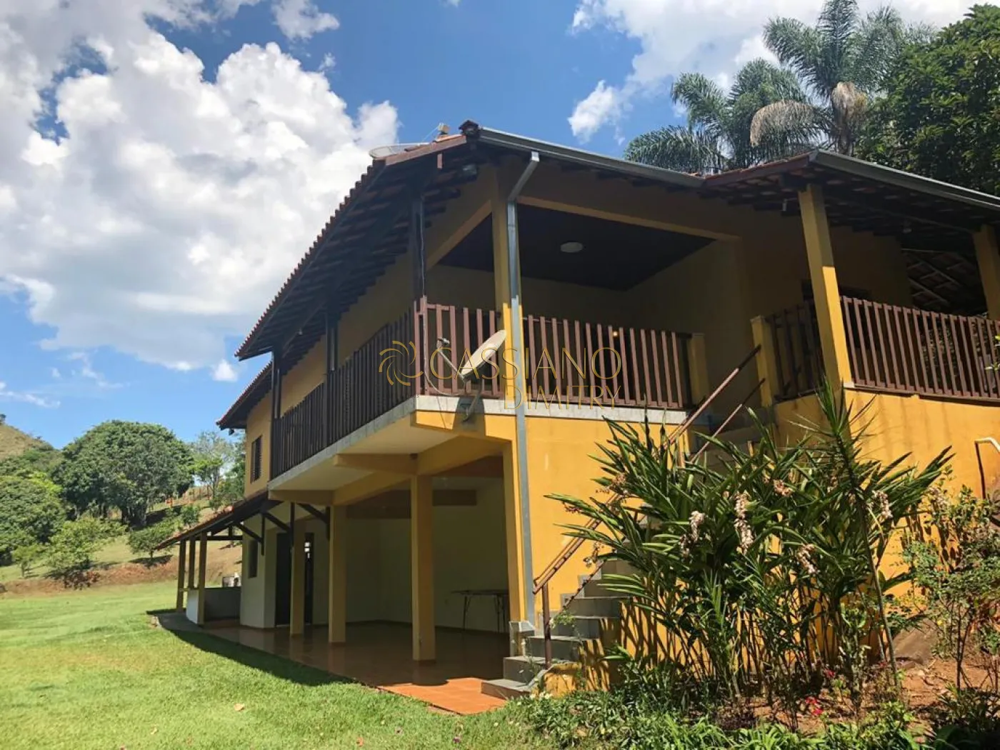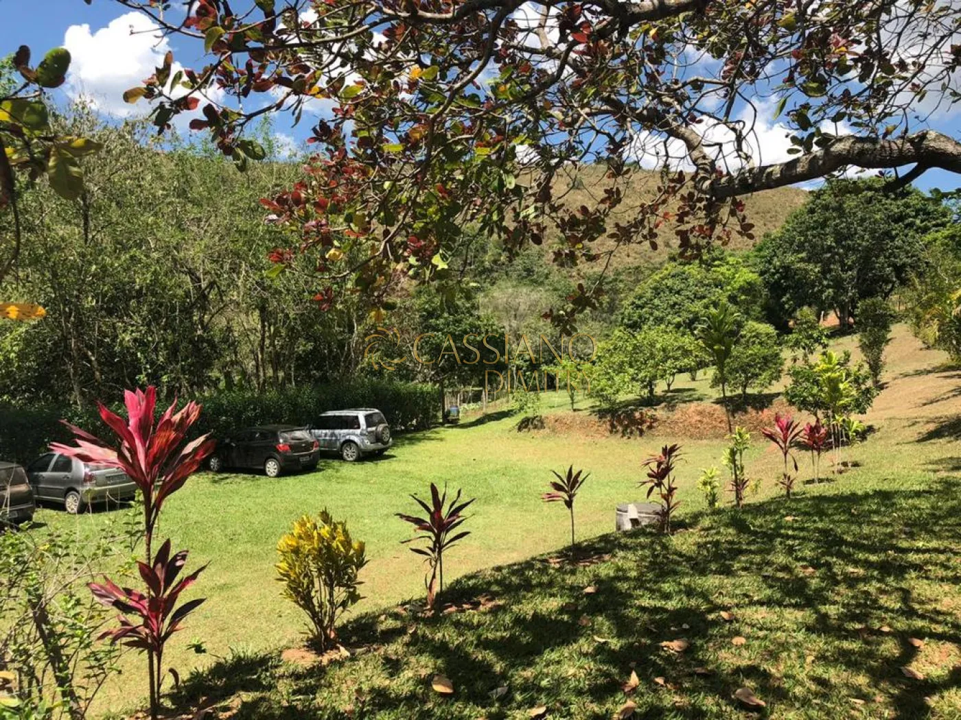 Na área externa de lazer há um campo gramado, pomar formado e pequeno lago alimentado por nascente natural, bem como gracioso córrego que atravessa a propriedade.